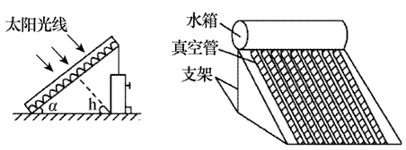 为了更好地利用太阳能,应不断调整太阳能热水器与楼顶平面之间的倾角,使太阳光与受热板之间成直角。其倾角和正午太阳高度角的关系为α+h=90°(如图所示)。