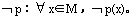 ③全称命题的格式:“对M中任意一个x,有p(x)成立”的命题,记为?x∈M,p(x),读作“对任意x属于M,有p(x)成立”。