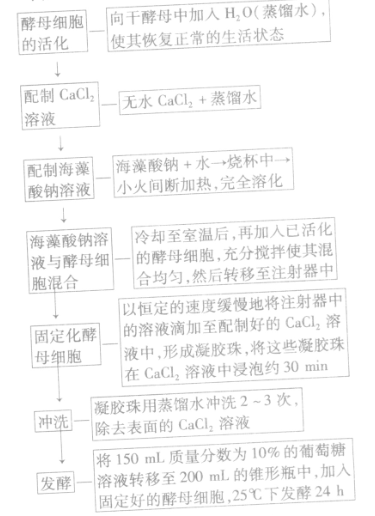 (1)配制海藻酸钠溶液:小火、间断加热、定容,如果加热太快,海藻酸钠会发生焦糊。
